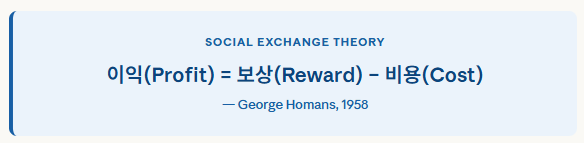 사회심리학자 조지 호만스(George Homans). 1958년 논문에서 아주 차가운 공식 하나를 내놓았습니다.